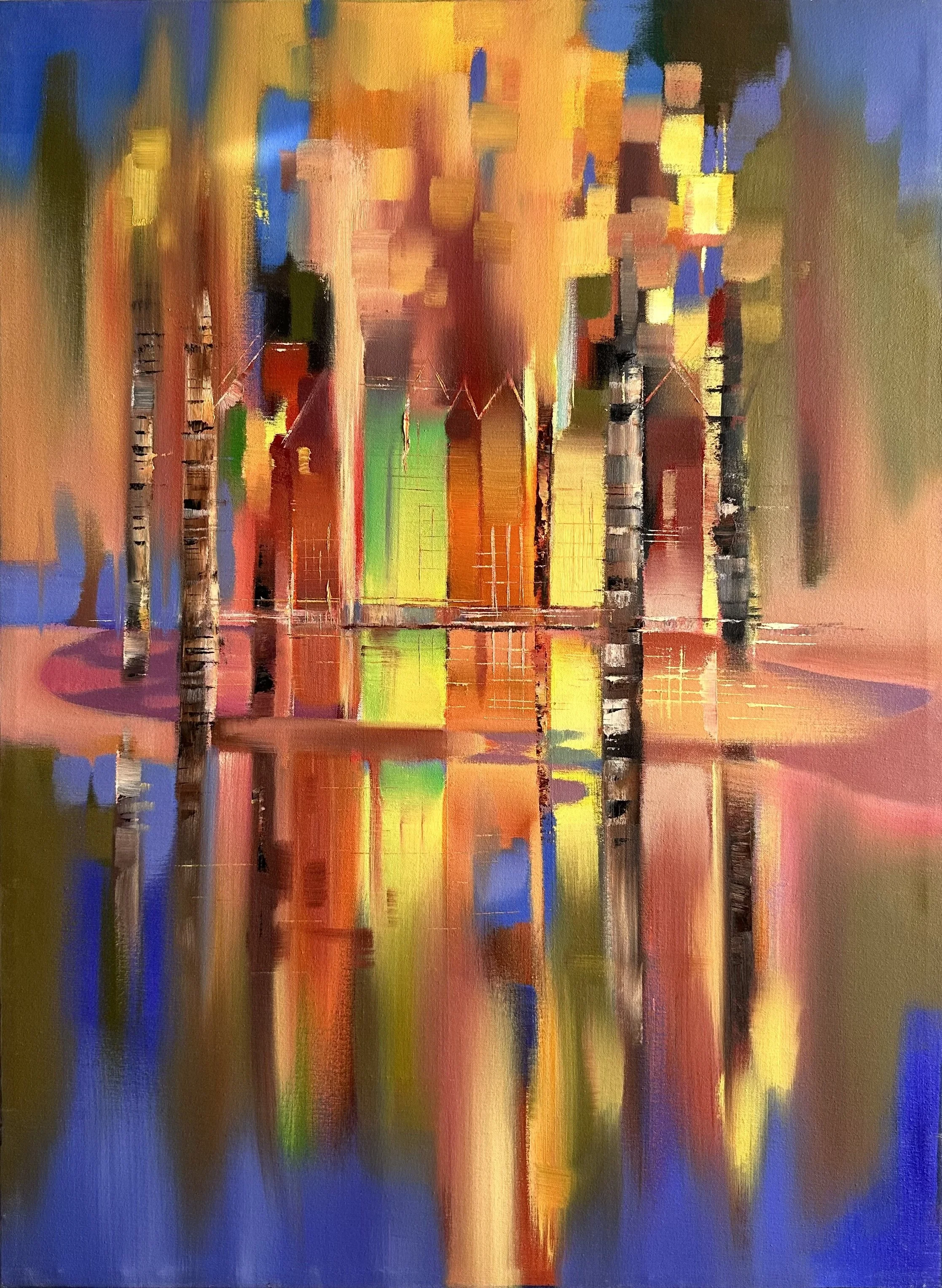 Krista Deda, Richmond Riverside Reflections, 2018, Oil & Acrylic on canvas, 30 x 36
